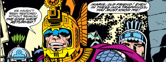 Valkin is Virako’s brother, Ikaris’ uncle and in the original Kirby, he’s the leader of the Polarian Eternals and is probably the second most Kirbiest design among the Eternals, which is saying something. He’s a fairly big deal in the original run but he hasn’t done much since so I think this is a good spot for him.