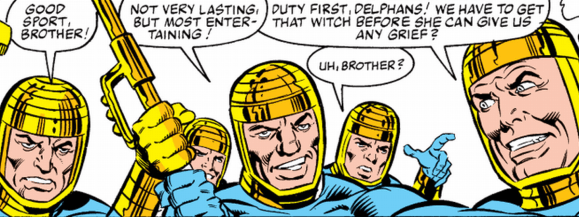 I guess this is a four-way tie. I kinda love the Delphan Brothers because they’re identical quadruplets who dress the same and just love to scrap. They’re Eternals as pure Id in many ways and you can just point them at something, wind them up and let them go. They’re idiots but they’re our idiots.