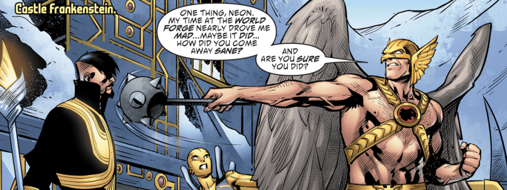 The driving story force of The Unexpected is a radioactive Nth Metal isotope that could go off at any moment and puncture the multiverse like a water balloon and Neon’s team’s journey to render it inert takes them all across the DC Universe from Gotham City to Blackhawk Island to Castle Frankenstein, all while being hunted by the Thanagarian monster, Onimar Synn. The world-hopping nature of The Unexpected’s story allows each issue to kind of serve as a one-shot set in different parts of the larger DC Universe, just as the original The Unexpected volume was an anthology highlighting different characters and genres. One issue they’re teaming with The Huntress and The Signal in Gotham City, another they’re off to Monster Valley on the advice of June Robbins of the Challengers of the Unknown.