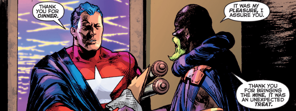 There’s a level of mutual respect between the two characters that I think Superman writers often toy with, but Lex as a character doesn’t really allow for that. However, it does bring to mind one of the greatest Superman stories of all time, Miracle Monday, which reveals that Superman’s greatest regret is that he wasn’t able to ever get through to Luthor. Samaritan’s relationship with Infidel is the same and shows a hero who just won’t give up; he sees the potential for greatness in Infidel’s genius and every year he’ll try and get through to it bit by bit, even if it takes all of their lives.