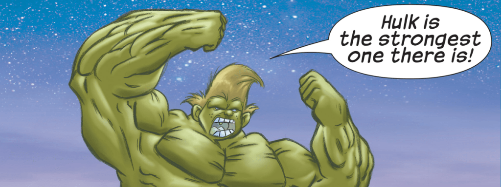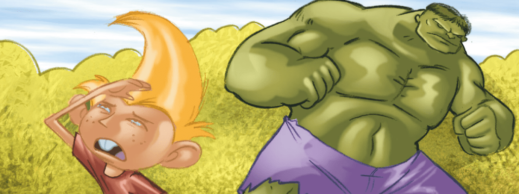 I wish I knew a kid I could give these comics to in order to get a genuine reaction from the intended audience, because I don’t want to be too harsh on a comic that just isn’t for me. I don’t like kids, so kids aren’t really ideal protagonists for me but I can definitely tell that this series has its charms and I can see a lot myself in Gus. When I was about five, I locked myself in the bathroom and drew Xs all over my body with a blue felt-tip pen because I wanted to be in the X-Men; my grandad had to come over and take the door off the hinges to get me out. Similarly, Gus paints his entire body green in an attempt to be The Hulk.