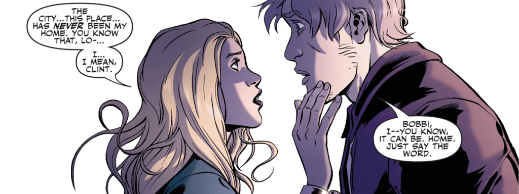 Mockingbird returned to Earth alongside other captured Avengers allies like Spider-Woman, Yellowjacket and Edwin Jarvis and as this story shows, while Clint was eager to pick up where they left of, Bobbi wasn’t ready to move on from her experience as a Skrull captive. This story kicked off a few years of Jim McCann acting as the steward of Clint and Bobbi, beginning in New Avengers: The Reunion, through Hawkeye & Mockingbird, Widowmaker, Hawkeye: Blindspot, and Avengers Solo for a decent three years with the characters, which is more than a lot of people get and at the time as the longest stretch Hawkeye had got as a solo character away from the Avengers.