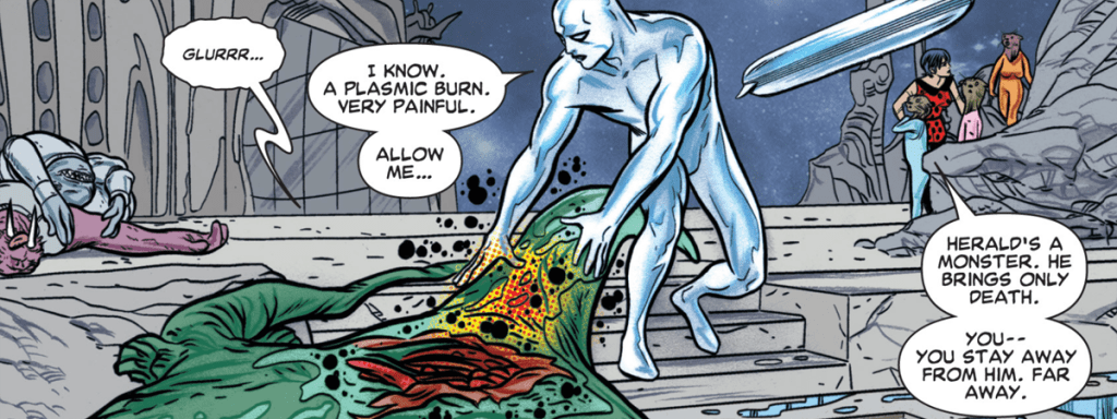 Silver Surfer as Doctor Who is a really simple concept that Dan Slott and the Allreds were able to spin into something really special over the course of two volumes and about thirty issues, and this vignette is a perfect showcase of the best moments from this run. I’ve found there are two kinds of stories creators like to tell within these preview anthologies; the first kind is like the Loki story in this issue, it’s a straight-up prologue to the main series while the second is like this Silver Surfer story and takes place later the run chronologically but serves as a sample of what readers can expect from the series itself.